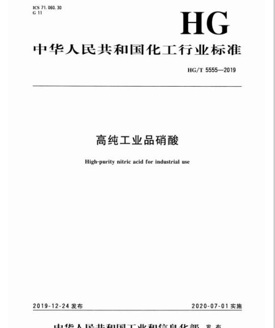 HG/T 5555适用于高纯工业品硝酸。该产品主要应用于太阳能光伏行业、液晶显示器件和半导体行业制程的清洗和刻蚀。
