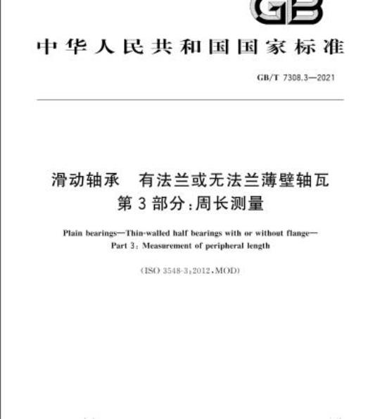 GB/T 7308.3-2021.Plain bearings-Thin-walled half bearings with or without flange-Part 3: Measurement of peripheral length.