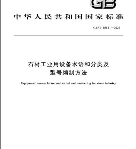 GB/T 39811规定了石材工业用设备的术语和分类及型号编制方法。