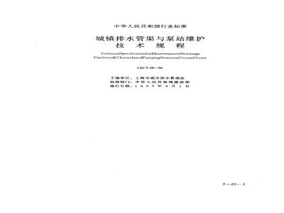 TechnicalSpecificationforMaintenanceofSeweragePipelines &ChannelsandPumpingStationinCityandTownCJJ/T 68—96