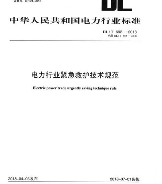 DL/T 692适用于全国电力行业各企业单位的生产现场紧急救护技术操作。