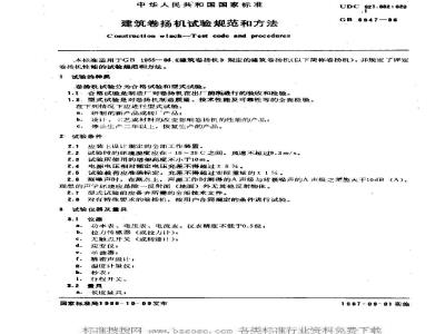 本标准适用于GB1955-86《建筑卷扬机》规定的建筑卷扬机《以下简称卷扬机》并规定了评定卷扬机性能的试验规范和方法。 GB 6947-1986 建筑卷扬机试验规范和方法 GB6947-1986 标准下载解压密码:www.bzxz.net