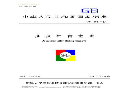 本标准规定了推拉铝合金窗的品种规格技术性能质量等级和检验规则等.本标准适用于建筑用推拉铝合金窗(以下简称窗)代号为TLC.本标准也适用于带纱扇推拉铝合金窗,代号为ATLC. GB 8481-1987 推拉铝合金窗 GB8481-1987 标准下载解压密码:www.bzxz.net