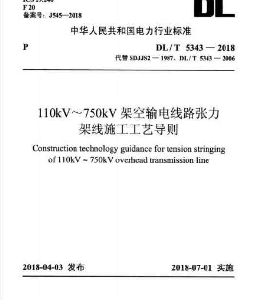 代替SDJJS2—1987、DL/T5343—2006110kV~750kV架空输电线路张力架线施工工艺导则