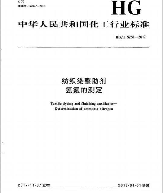 HG/T 5251适用于纺织染整助剂中氨氮含量的测定。