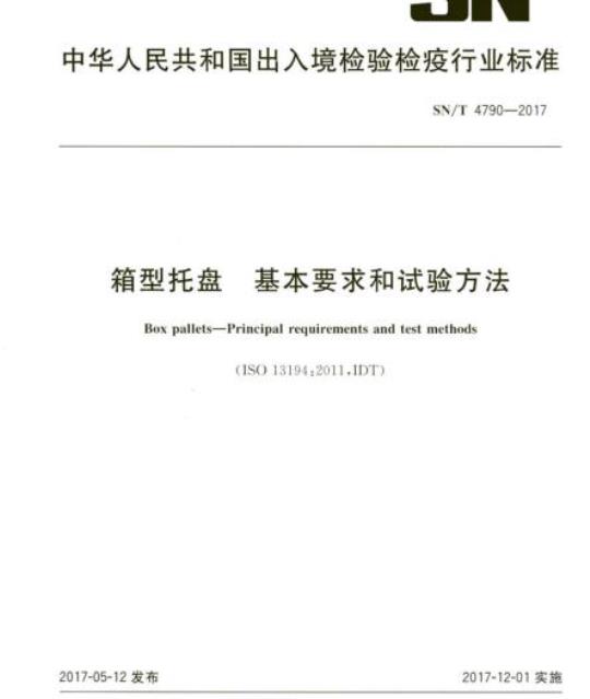 SN/T 4790规定了箱型托盘相关的术语.基本要求和试验方法。