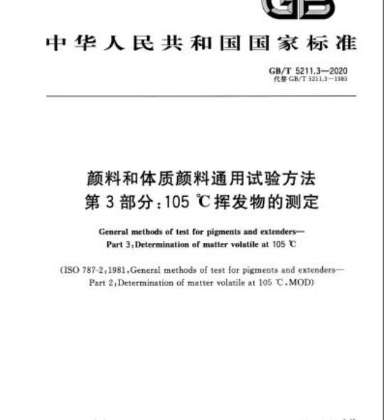 GB/T 5211.3-2020.General methods of test for pigments and extenders-Part 3 :Determination of matter volatile at 105℃.