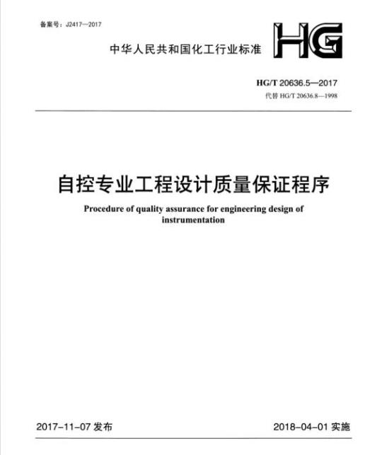 HG/T 20636.5-2017.Procedure of quality assurance for engineering design of instrumentation.