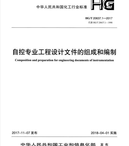 中文名称:代替 HG/T 20637.1-1998 自控专业工程设计文件的组成和编制