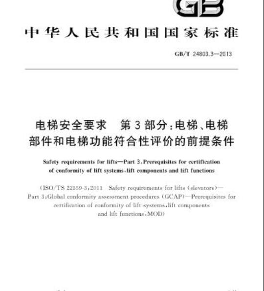 电梯安全要求第3部分:电梯、电梯部件和电梯功能符合性评价的前提条件GB/T24803.32013