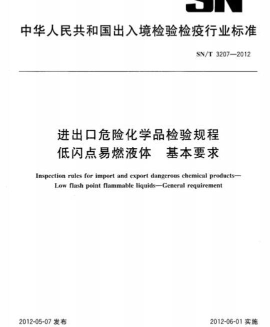 SN/T 3207-2012.Inspection rules for import and export dangerous chemical products-Low flash point flammable liquids-General requirement.