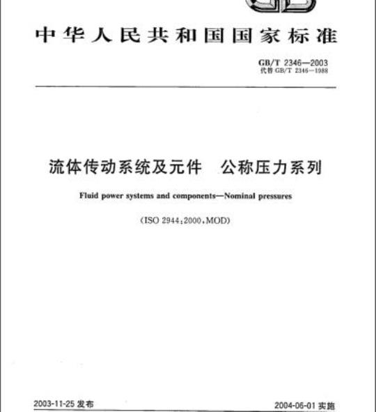 GB/T 2346规定了流体传动系统及元件的公称压力系列。