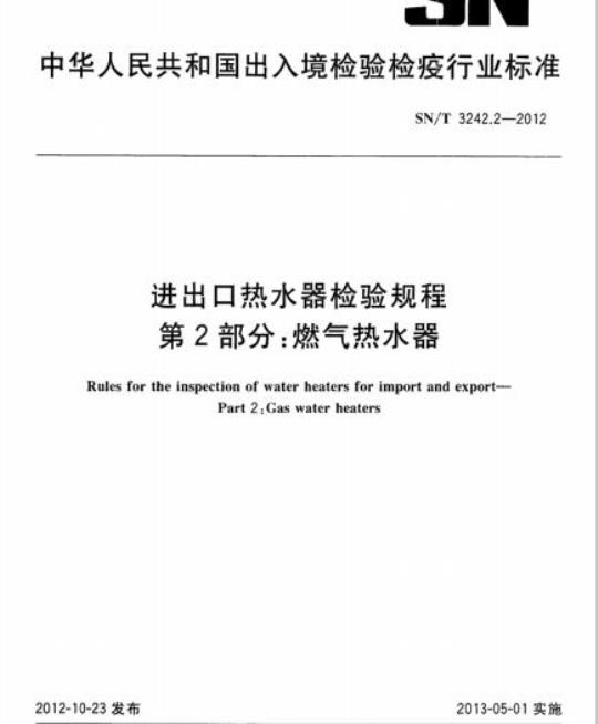 SN/T 3242.2规定了进出口燃气热水器的检验要求、检验方式及合格判定。