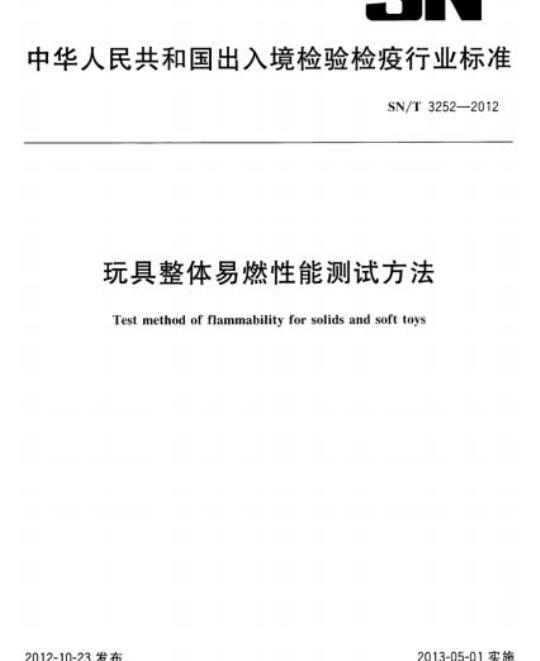 SN/T 3252-2012.Test method of flammability for solids and soft toys.