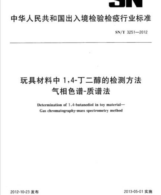 SN/T 3251规定了玩具材料中1,4-丁二醇的气相色谱-质谱检测方法。