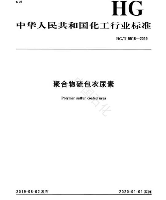 HG/T 5518适用于以聚合物和硫磺为主要包衣材料对颗粒尿素进行包衣,实现对氮的缓慢释放的聚合物硫包衣尿素。