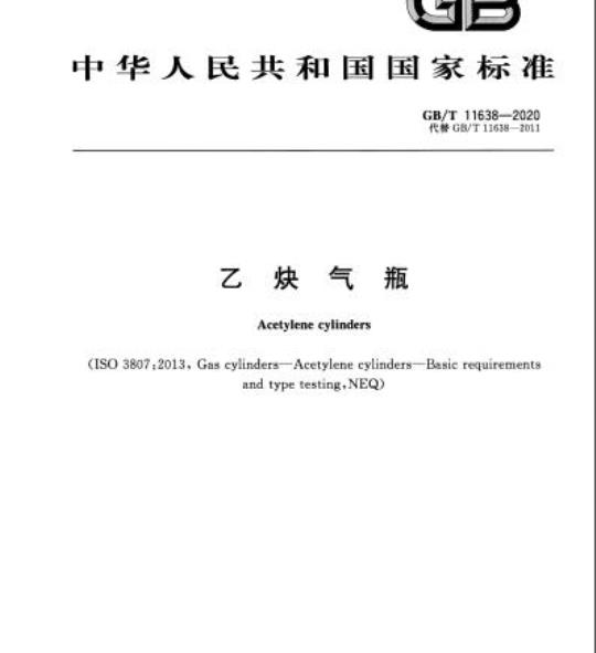 本标准按照GB/T1.1.-2009给出的规则起草。本标准代替GB/T11638—2011溶解乙炔气瓶》。本标与G1/T11638-2011相比较,除编辑性修改外主要技术变化如下:乙炔气瓶容积上限由60L调整到100L;增加了DMF溶剂乙炔气瓶的相关要求;将填料的抗压强度由1.8MPa提高到2.0MPa;GB/T116382020