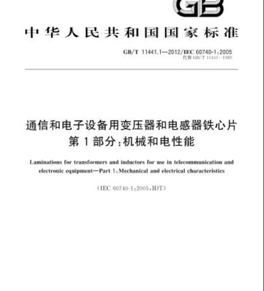 GB/T11441.1—2012/IEC60740-1:2005GB/T11441《通信和电子设备用变压器和电感器铁心片》分为2个部分:第1部分:机械和电性能: