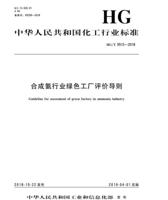 HG/T 5512适用于以煤炭、天然气为原料的合成氨行业的绿色工厂评价,以渣油、重油、褐煤、焦炉气为原料的合成氨行业绿色工厂评价可参照使用。