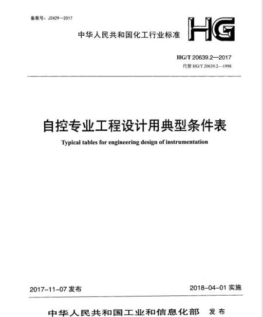 中文名称:代替 HG/T 20639.2-1998 自控专业工程设计用典型条件表