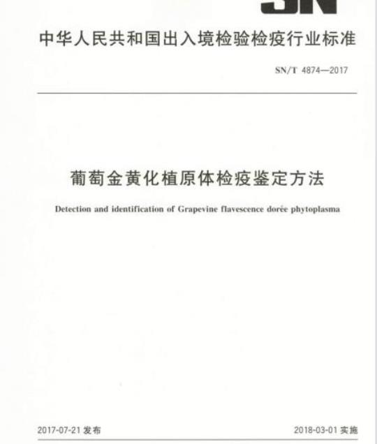 SN/T 4874规定了葡萄金黄化植原体的检疫和鉴定方法。