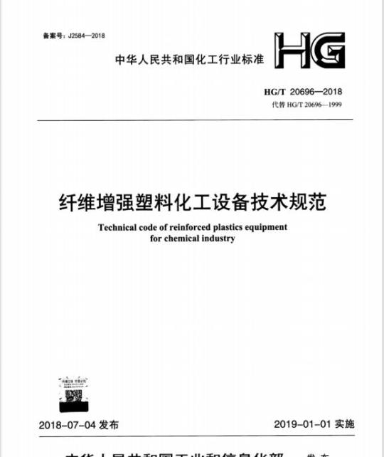 HG/T 20696-2018.Technical code of reinforced plastics equipment for chemical industry.