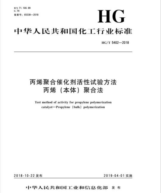 HG/T 5402适用于采用丙烯(本体)聚合法测定丙烯聚合催化剂的活性。