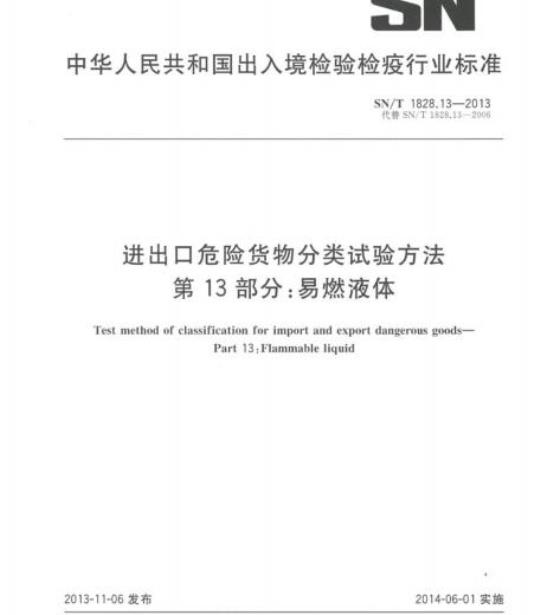 SN/T 1828.13规定了进出口易燃液体危险货物的试验和类别判定。
