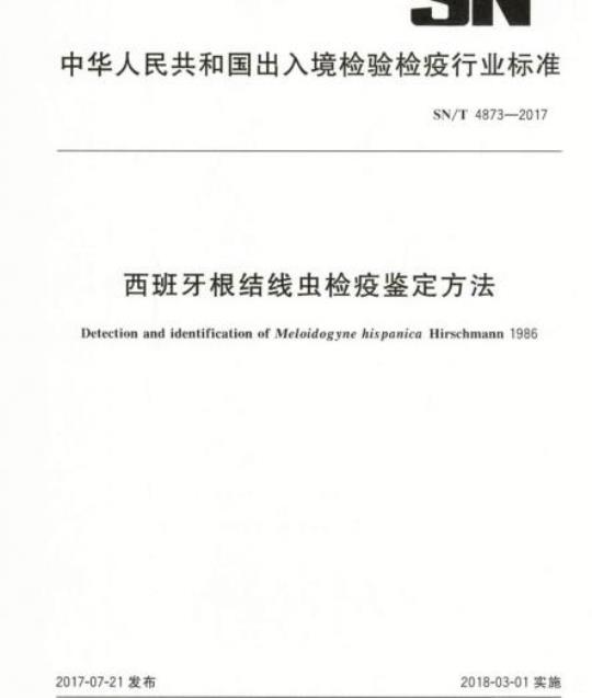 SN/T 4873适用于进出境植物及其繁殖材料、土壤及栽培介质中西班牙根结线虫的检疫和鉴定。