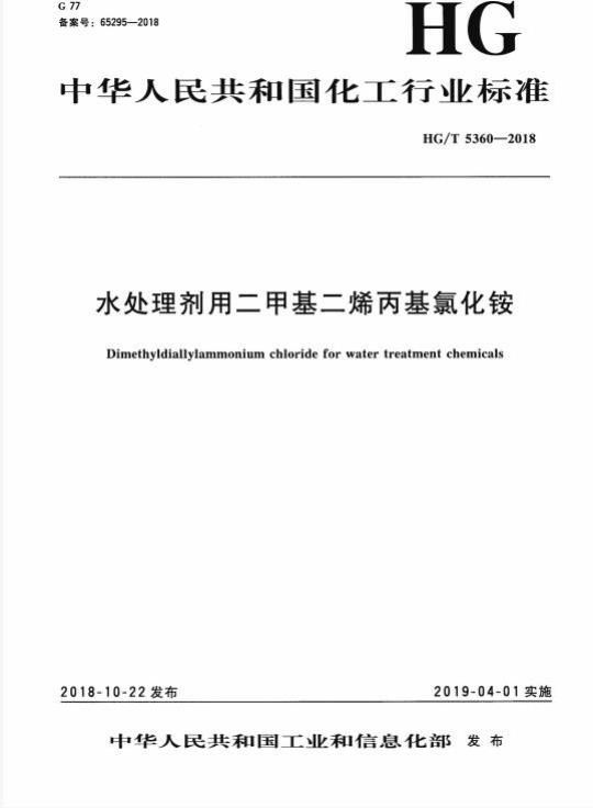 水处理剂用二甲基二烯丙基氯化铵HG/T5360—2018