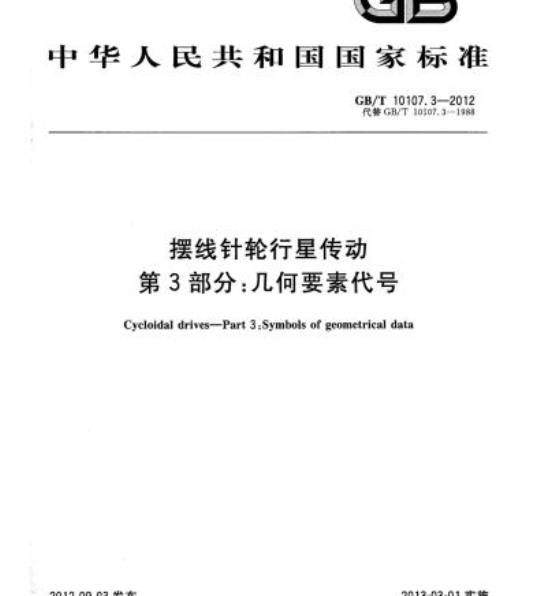 本部分为GB/T10107的第3部分。本部分按照GB/T1.1—2009给出的规则起草。本部分代替GB/T10107.3一1988《摆线针轮行星传动GB/T10107.3—1988相比,除编辑性修订外,主要修改部分如下:修订和增加了d,、rp、D和R的同义词(见第3章);GB/T10107.3-2012