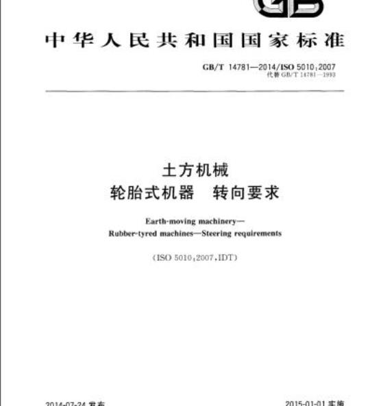 GB/T 14781适用于ISO 6165中定义的安装机械转向系统、动力助力转向系统或动力转向系统的推土机、装载机、挖掘装载机、挖掘机自卸车、铲运机和平地机。