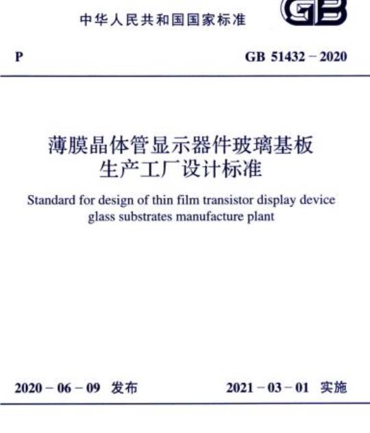 GB 51432-2020.Standard for design of thin film transistor display device glass substrates manufacture plant.