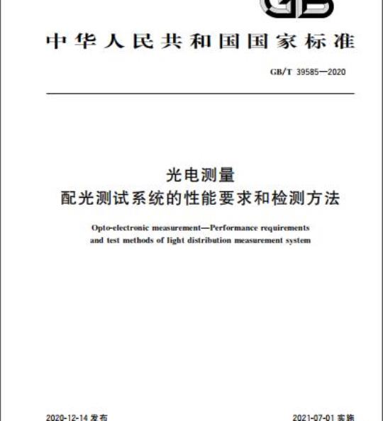 GB/T 39585-2020.Opto-electronic measurement-Performance requirements and test methods of light distribution measurement system.