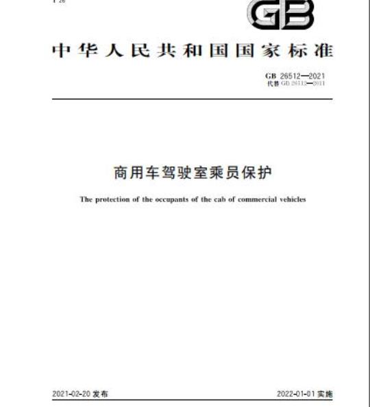GB 26512-2021.The protection of the occupants of the cab of commercial vehicles.