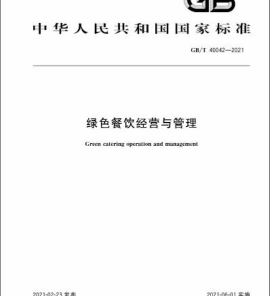 GB/T 40042规定了绿色餐饮经营与管理的基本要求,以及节约餐饮、环保餐饮、放心餐饮、健康餐饮、绿色餐饮街区和持续改进。