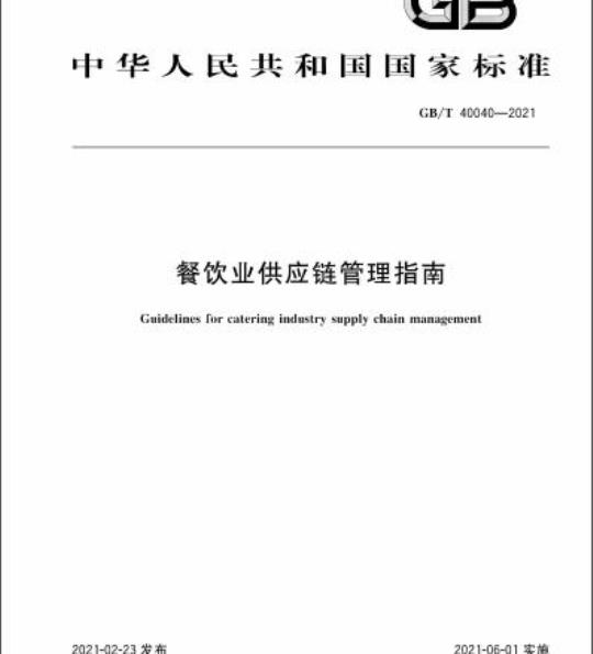 GB/T 40040提供了餐饮业实施供应链管理的总则,给出了餐饮业供应链的基本模型、策划设计与运行管理的指导。