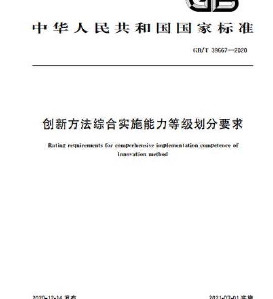 GB/T 39667-2020.Rating requirements for comprehensive implementation competence of innovation method.