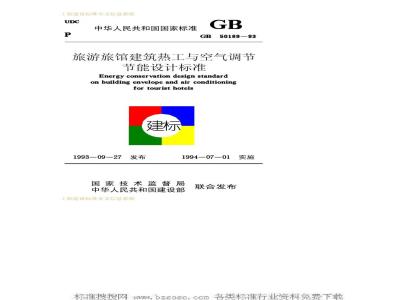 GB 50189-1993 旅游旅馆建筑热工与空气调节节能设计标准GB50189-93 GB50189-1993 标准下载解压密码:www.bzxz.net