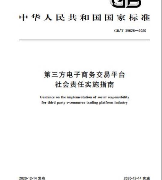 Guidance on the implementation of social responsibilityfor third party e-commerce trading platform industry2020-12-14发布