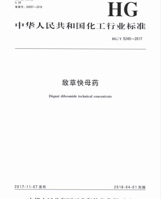 HG/T 5245适用于由敌草快及其生产过程中产生的杂质组成的敌草快母药。