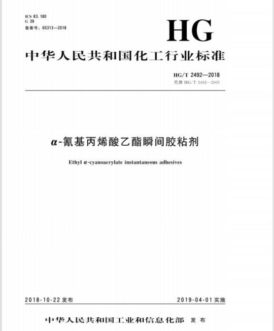 HG/T 2492-2018.Ethyl a-cyanoacrylate instantaneous adhesives.