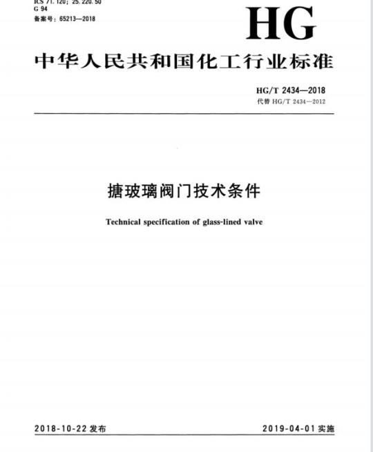 HG/T 2434-2018.Technical specification of glass-lined valve.