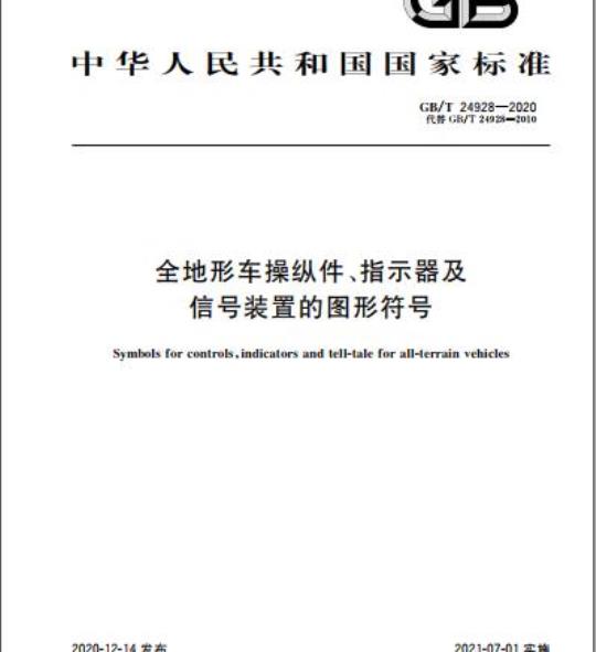 GB/T 24928规定了全地形车操纵件、指示器及信号装置的图形符号以及光信号装置颜色的要求。