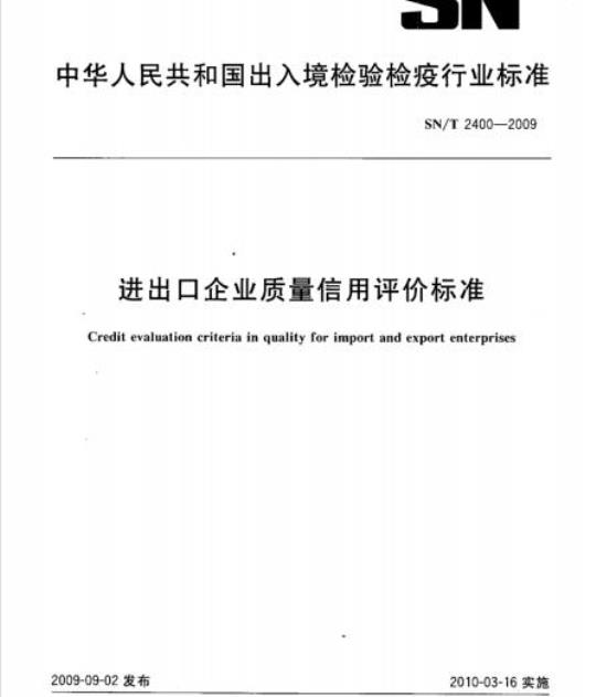 SN/T 2400规定了对进出口企业进行质量信用评价的方法和标准。