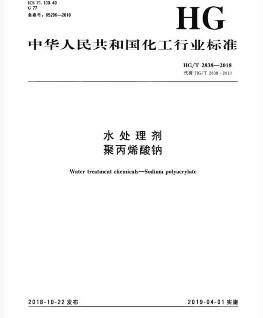 HG/T 2838适用于水处理剂聚丙烯酸钠。该产品主要用作工业用水、污水处理的阻垢分散剂以及特种化学品制造中的分散剂。