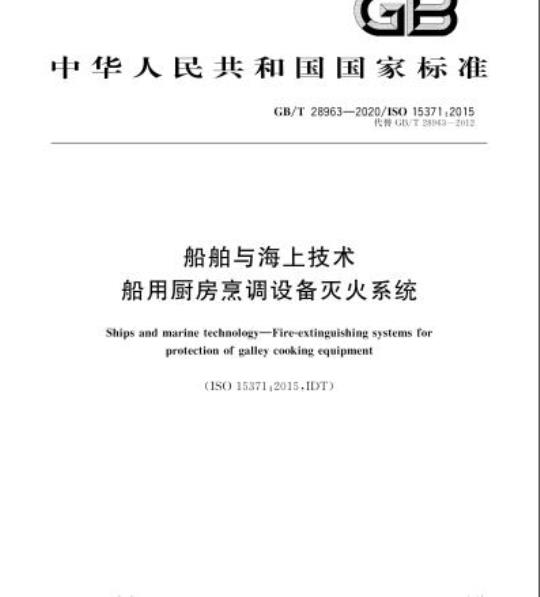 GB/T 28963-2020.Ships and marine technology-Fire-extinguishing systems for protection of galley cooking equipment.