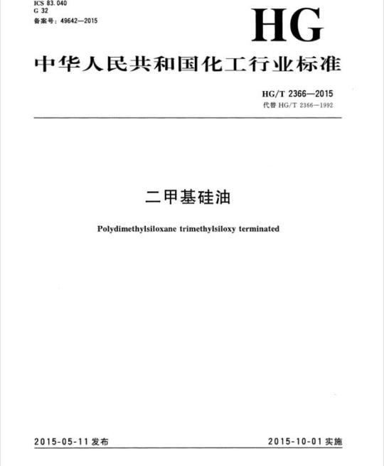 中文名称:代替 HG/T 2366-1992 二甲基硅油