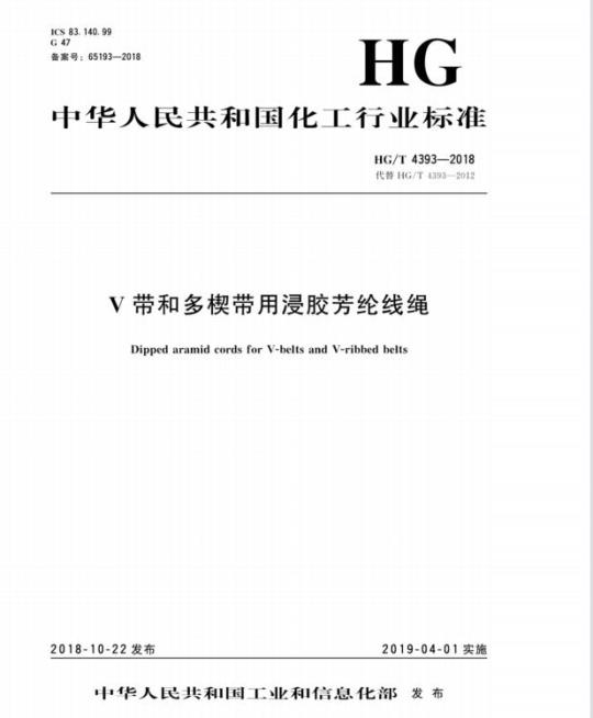 HG/T 4393适用于V带和多楔带用浸胶芳纶线绳的品质鉴定和验收,其他橡胶制品用浸胶芳纶线绳也可以参照执行。
