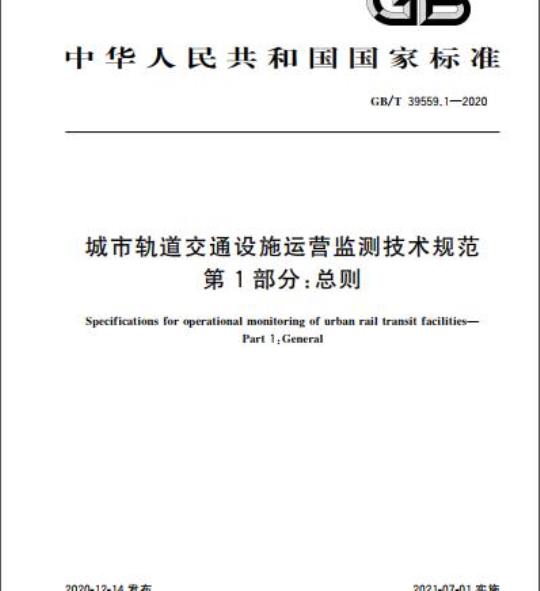 GB/T 39559.1-2020.Specifications for operational monitoring of urban rail transit facilities-Part 1 :General.